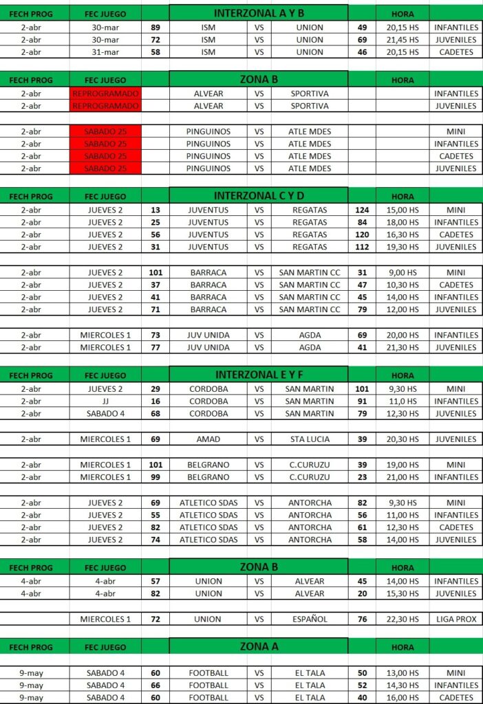 En los duelos del Interzonal entre las zonas A y B, ISM derrotó a Unión en Infantiles, Cadetes y Juveniles. Mientras que por la Zona B, Unión venció a Alvear en Infantiles y Juveniles, pero le tocó caer en Liga Próximo contra Español.